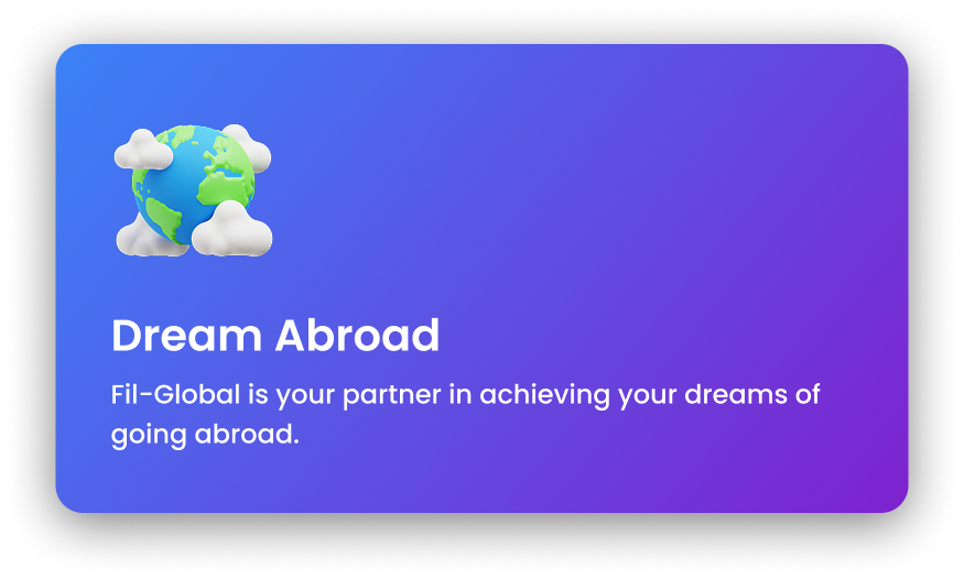 At Fil-Global, we prioritize your needs and ensure a seamless application process. Our dedicated team of experts is here to support you every step of the way. Choosing Fil-Global means making a life-changing decision for your future.